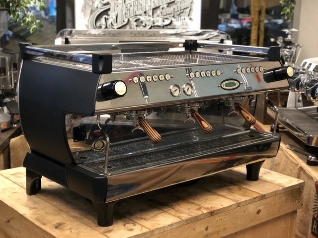 La marzocco gb5 av, matt black, 3 group, volumetric espresso machine.